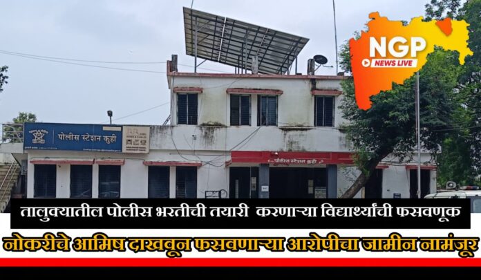 कुही : बेरोजगार तरुणांना सरकारी नोकरीचे आमिष दाखवून तब्बल ३४ लाख ६० हजारांची फसवणूक करणाऱ्या माजी सैनिक पुरुषोत्तम बिलेवार या मुख्य आरोपीला न्यायालयाने पुन्हा एकदा जामीन नाकारत जोरदार झटका दिला आहे. कुही पोलिसांनी दोषारोपपत्र सादर केल्यानंतर आरोपीने नव्याने जामिनासाठी अर्ज केला होता. मात्र प्रकरणाचे गांभीर्य, जमा झालेल्या तांत्रिक पुराव्यांची ताकद आणि वाढत्या तक्रारींच्या पार्श्वभूमीवर न्यायालयाने बिलेवारचा अर्ज दुसऱ्यांदा फेटाळला.